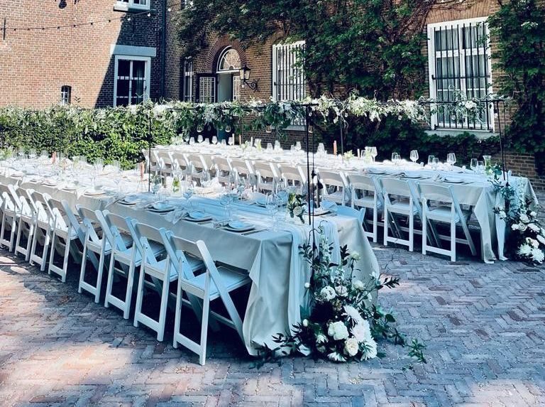 - Mogelijkheid tot verkleinen Pronckzaal d.m.v. gordijnen tussen de pilaren te spannen